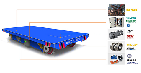 BHX:采用滑觸線將380V交流電源引入平車作為該平車的電力來源,其運(yùn)行頻率和使用時間不受束縛,適用于較長距離運(yùn)輸?shù)膱龊稀;|線安裝平車底部或兩側(cè),會對其他車輛的過往造成影響,但因其臺面較低,卻是流水線生產(chǎn)的 輸送設(shè)備。