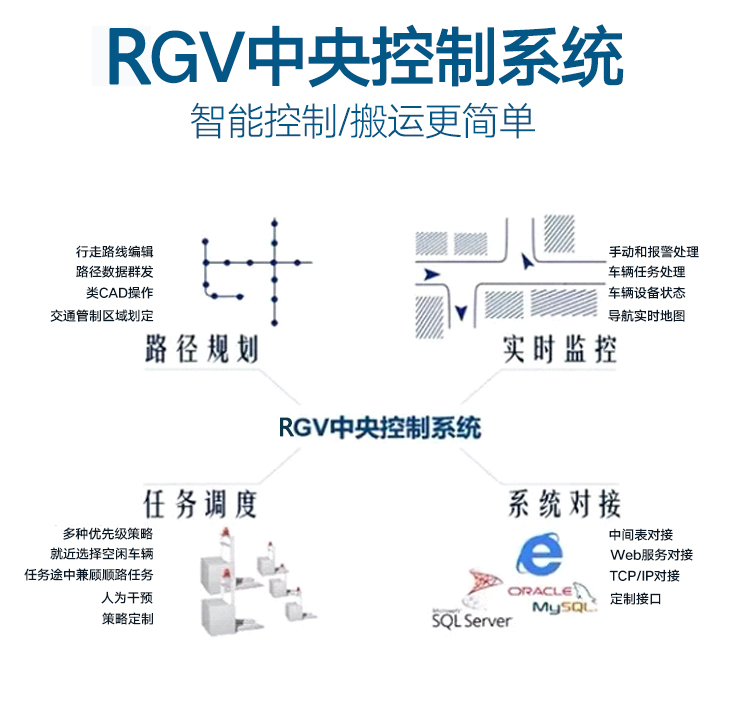 RGV屬于是有軌制導(dǎo)車輛,運(yùn)行路線上有導(dǎo)軌的引導(dǎo),全程有自動(dòng)化電器控制,可以滿足高精度的對(duì)接。由于有軌道的限制,RGV沒有自動(dòng)導(dǎo)引搬運(yùn)車AGV的靈活性好,智能程度高。