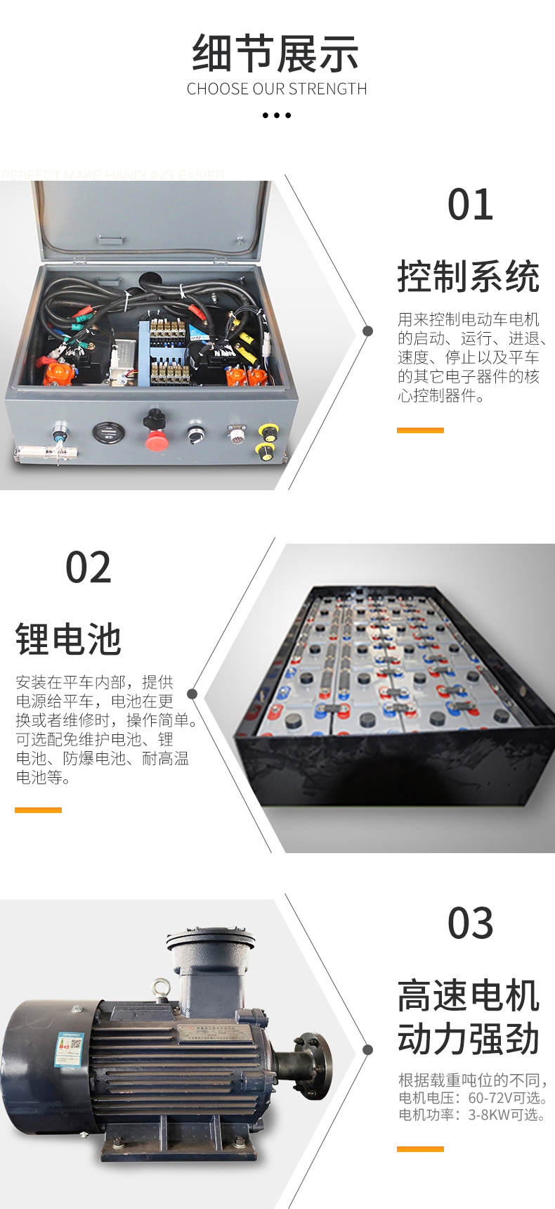 電池采用免維護蓄電池供電,平車臺面20年不變形
